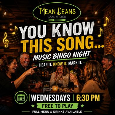 Join us for Music Bingo at Mean Deans, a fun and interactive night of music, great food, and good company.